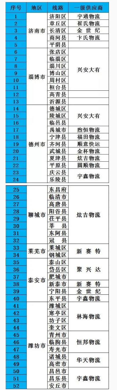 1、濟(jì)南為中心輻射山東所有地、縣級(jí)市,直達(dá)線路122條,提升服務(wù)時(shí)效的同時(shí)降低客戶的運(yùn)營(yíng)成本。
