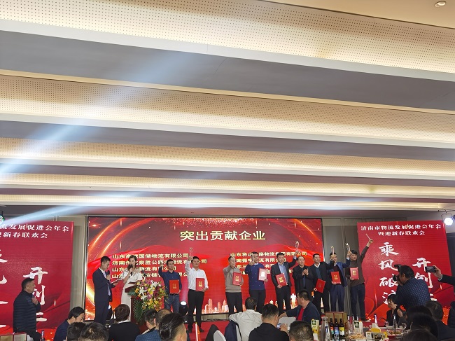 12月21日,農(nóng)歷冬至,濟南市物流發(fā)展促進會年會暨迎新春聯(lián)歡會在鵲華國際酒店成功舉辦。濟南市口岸物流辦、市工信局、市工商聯(lián)、市商務局、市公安局物流寄遞保衛(wèi)支隊及各區(qū)縣工信局、發(fā)改局等分管領導共計50余人出席會議,物促會名譽會長馬純濟、王世敦,專家顧問團卞允斗、孟慶春、李曉東,物促會領導班子以及近300家會員企業(yè)代表共聚一堂,歡度年會。