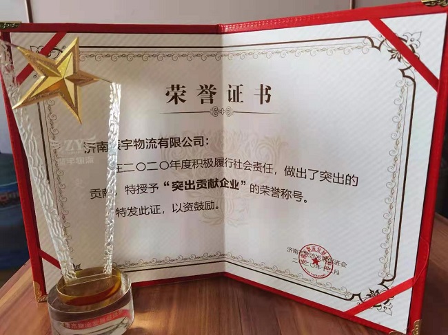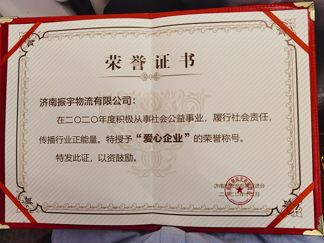熱烈祝賀振宇物流榮獲“突出貢獻企業(yè)”“愛心企業(yè)”榮譽稱號!