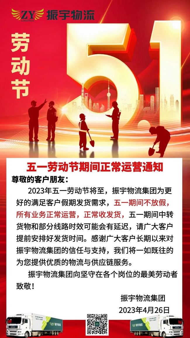 振宇物流集團(tuán)丨五一期間正常運(yùn)營(yíng)通知