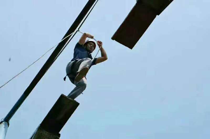 在訓練過程中,全體員工被分為三支隊伍并展開了激烈的競爭,8米的高空斷橋,真正的個人挑戰,敢于挑戰便是對自己的一大突破,只有勇 于不斷的去突破自己,才能在工作、生活中有所成長,有所改變;所有學員站在1.5高的背摔臺上背對著大家,身體筆直的倒下,由下面的伙 伴將其接住。面對這個挑戰,敢不敢將自己的后背交給隊友?敢不敢充分的相信隊友?如何去建立信任……通過訓練活動讓員工們體驗到解 決問題的方法,員工們之間面對同樣一個問題所表現出來的態度,如何達到共識,并進行配合共同解決。最終大家齊心協力在規定時間內完 成了超音速、背摔、斷橋、有軌電車、求生墻等眾多項目。