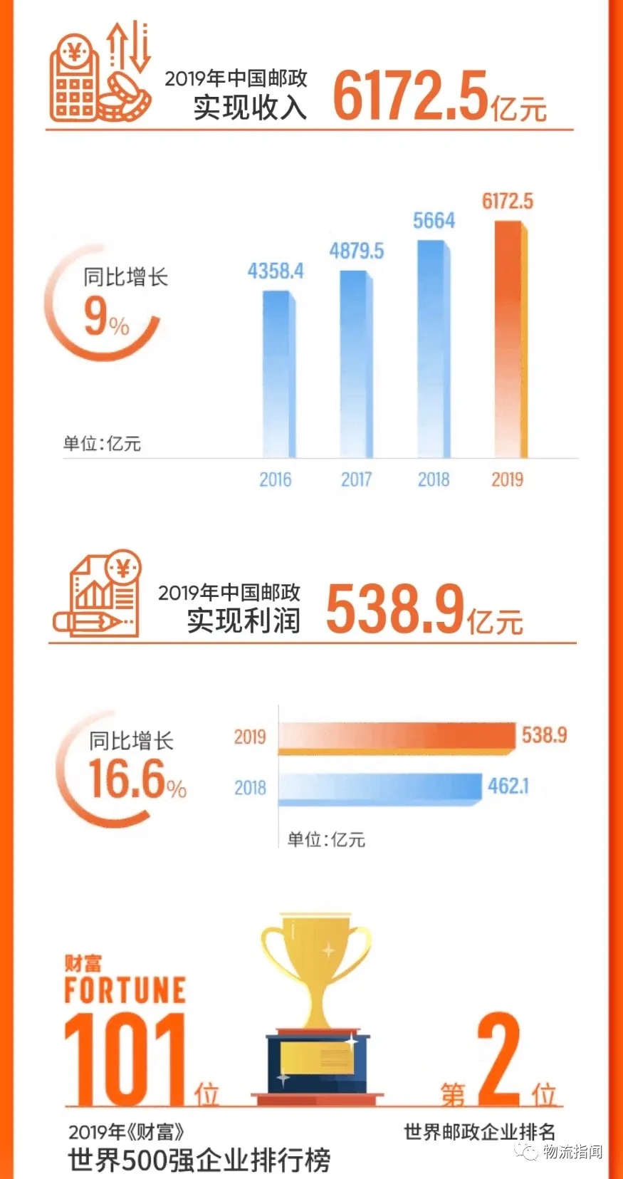 濟南物流:中國郵政集團披露2019年業績:收入6172.5億,利潤538.9億