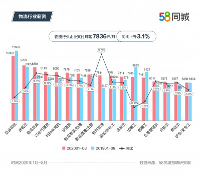 薪酬水平也是物流行業就業的重要指標,58同城招聘研究院數據顯示,今年1-8月,交通運輸、倉儲和郵政業支付月薪達到7836元,同比上升3.1%。典型職位中,貨運司機支付月薪第一,達到10808元;送餐員支付月薪排名第二,為9200元;物料管理支付月薪同比上升最快,增幅38%,月薪達到7531元。可見,物流行業崗位薪資與崗位技術含量、市場需求、勞動強度密切相關,技術含量高、市場需求大、勞動強度大的崗位收入更高。