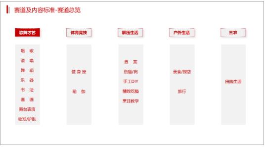 根據(jù)京東推出的主播招募政策,面向歌舞才藝、體育競(jìng)技、解壓生活、戶外生活、三農(nóng)五個(gè)大賽道下的17個(gè)細(xì)分賽道招募內(nèi)容型主播。從政策細(xì)則來看,京東對(duì)每個(gè)細(xì)分賽道都做了具體的“內(nèi)容標(biāo)準(zhǔn)”要求,包括直播場(chǎng)景、音畫質(zhì)量、主播狀態(tài)、直播內(nèi)容等等。